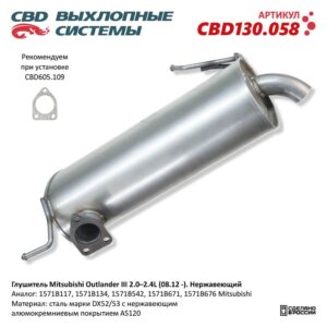 В корзину Глушитель Mitsubishi Outlander III 2.0–2,4L (08.12 -). Нержавеющий (15718117, 15718134, 15718542, 15718671, 15718676) 310.0 руб.