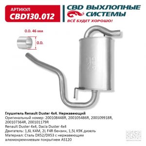 Глушитель задняя часть Renault Duster 4×4 1,6 / 2,0L. Нержавеющий