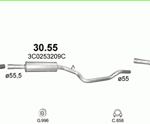 Глушитель средняя часть 30.55 для VOLKSWAGEN PASSAT B5 1.9 D
